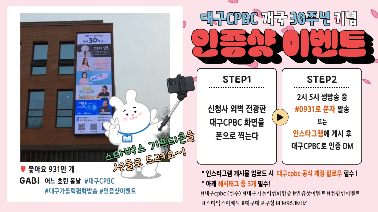 #´ë±¸cpbc #´ë±¸°¡Å縯Æòȹæ¼Û #ÀÎÁõ¼¦À̺¥Æ® #Àü±¤ÆÇÀ̺¥Æ® #½ºÅ¸¹÷½ºÀ̺¥Æ® #´ë±¸´ë±³±¸Ã» #93.1MHz